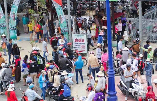 Bãi giữ xe của khu du lịch này luôn trong tình trạng rối loạn vì đông nghẹt người.