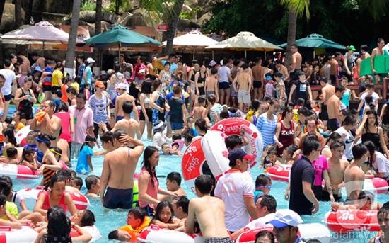 Khu bể bơi trong công viên nước không còn một chỗ trống để thoải mái bơi lội.