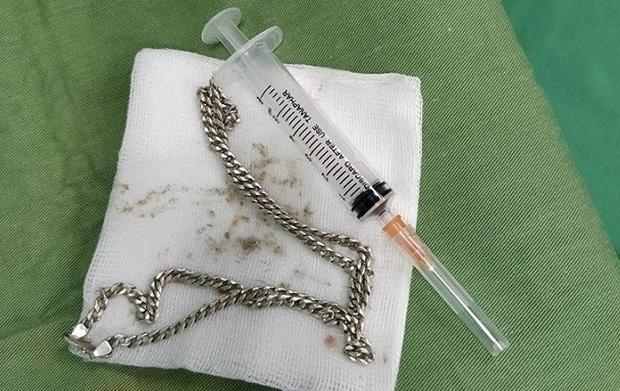 Sợi dây chuyền bạc được lấy ra từ tá tràng bệnh nhi.