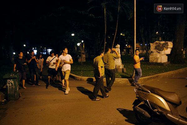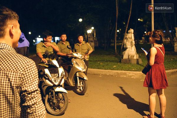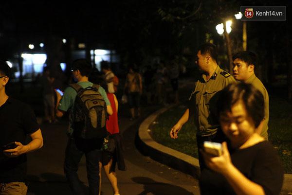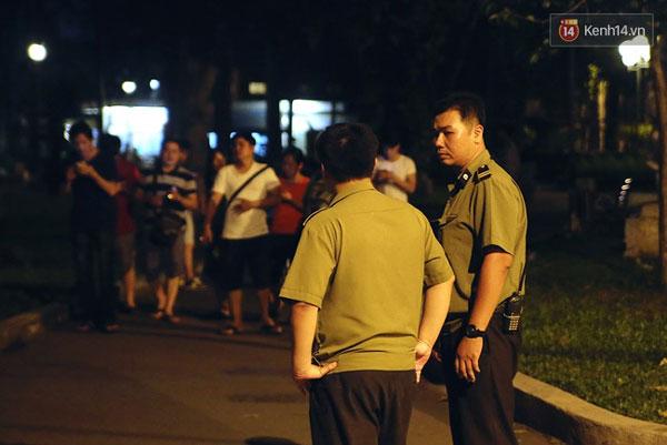 Từ 9h30 đến 10h tối, ông Thiện liên tục phát loa thông báo đã hết giờ, yêu cầu mọi người ra về thế nhưng lượng người tập trung ở công viên vẫn không ngớt. Lực lượng bảo vệ phải cử từng tốp chạy xe đi "lùa" khách ra khỏi công viên.