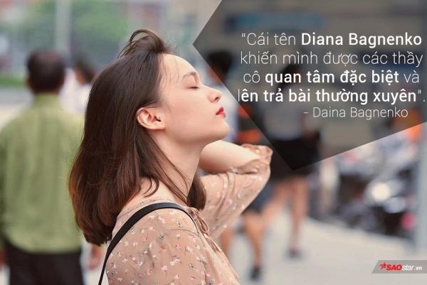 Diana chia sẻ: “Do được sinh ra ở Ukraina nên tên của mình là Diana Bagnenko. Tên Việt Nam hiện tại chỉ để gọi cho dễ thôi. Nhưng mà khi đi học, mình vẫn để tên gốc nên được cô chú ý và gọi trả bài thường xuyên”. Tuy nhiên, đây chỉ là 1 chia sẻ rất vui “tâm sự con lai” của cô nàng.