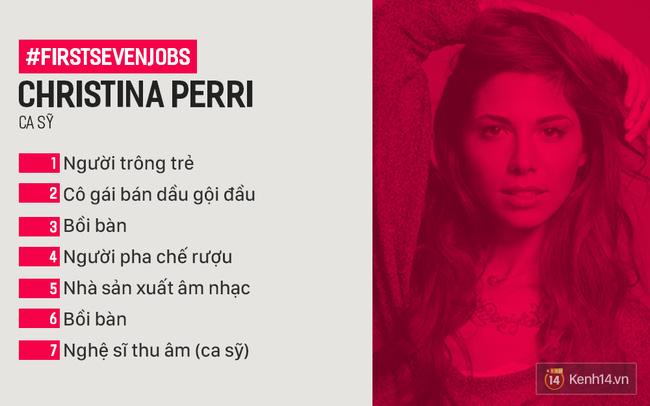 Nữ ca sỹ người Mỹ nổi tiếng Christina Perri với hàng loạt các bản hit như Jar of heart, a thousand years cũng từng làm khá nhiều nghề chả liên quan như nhân viên bán dầu gội đầu, pha chế rượu. Kể cả trước khi trở thành 1 nghệ sỹ thu âm với công việc thứ 7, Christina Perri vẫn chỉ là một cô bồi bàn.