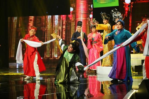 Nhóm kịch cổ trang Chuồn Chuồn Giấy cũng có tiết mục ấn tượng trong đêm thi tối qua với tiểu phẩm “Liên hoàn kế” - một tiểu phẩm cải biên dựa trên câu chuyện về Điêu Thuyền và Lữ Bố.