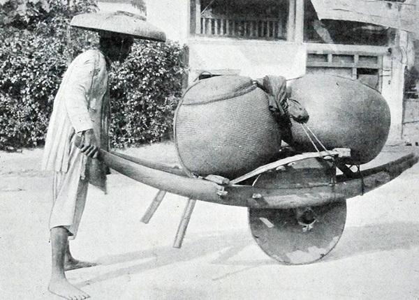 Cận cảnh người cửu vạn đẩy xe cút kít chở gạo, một loại hình “xe ôm” ở Hà Nội cuối thế kỉ 19