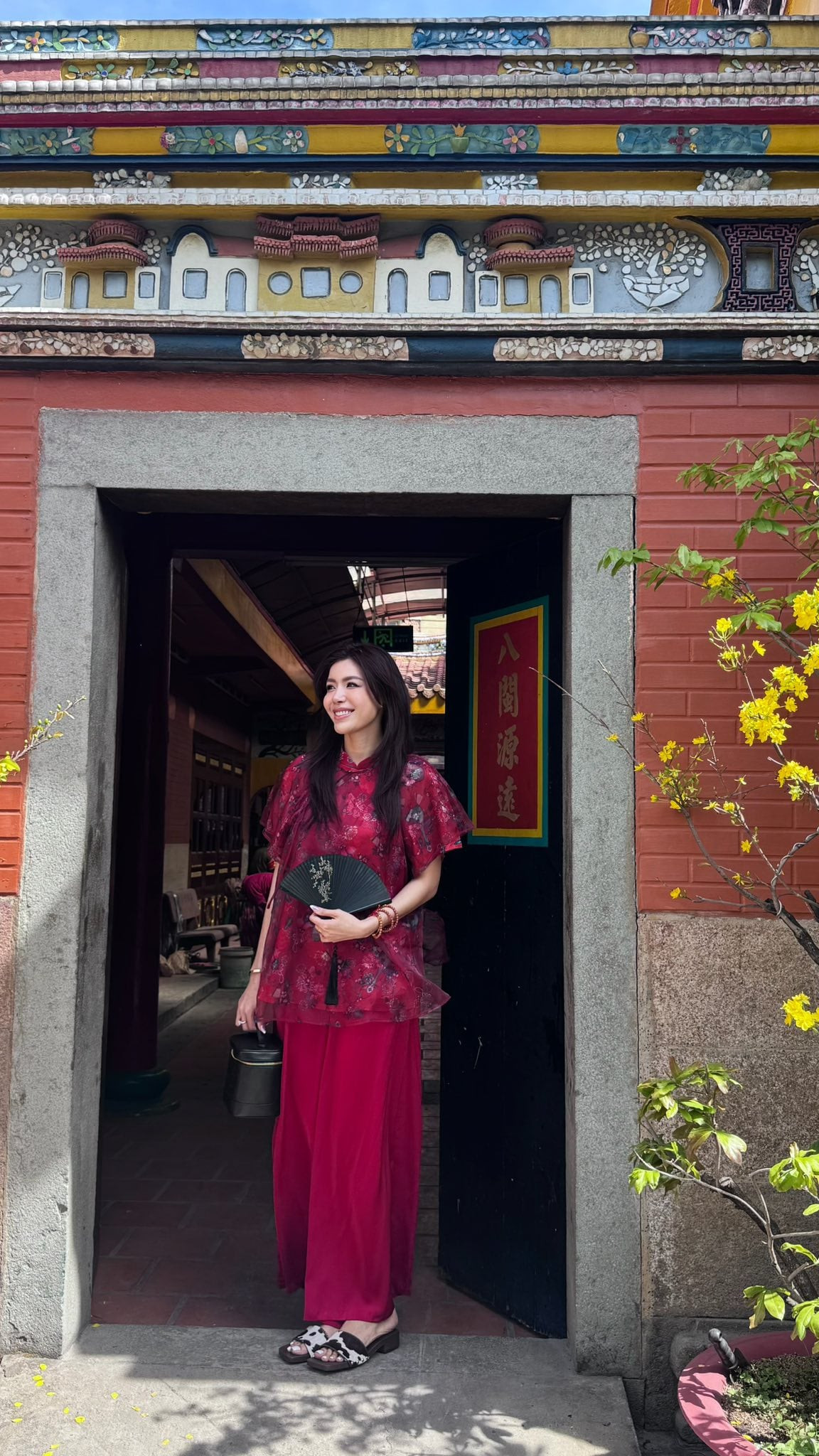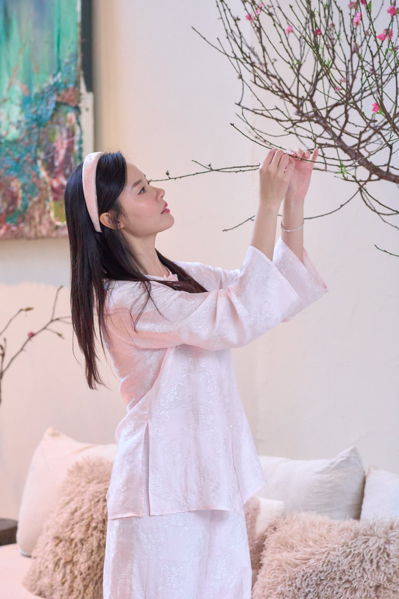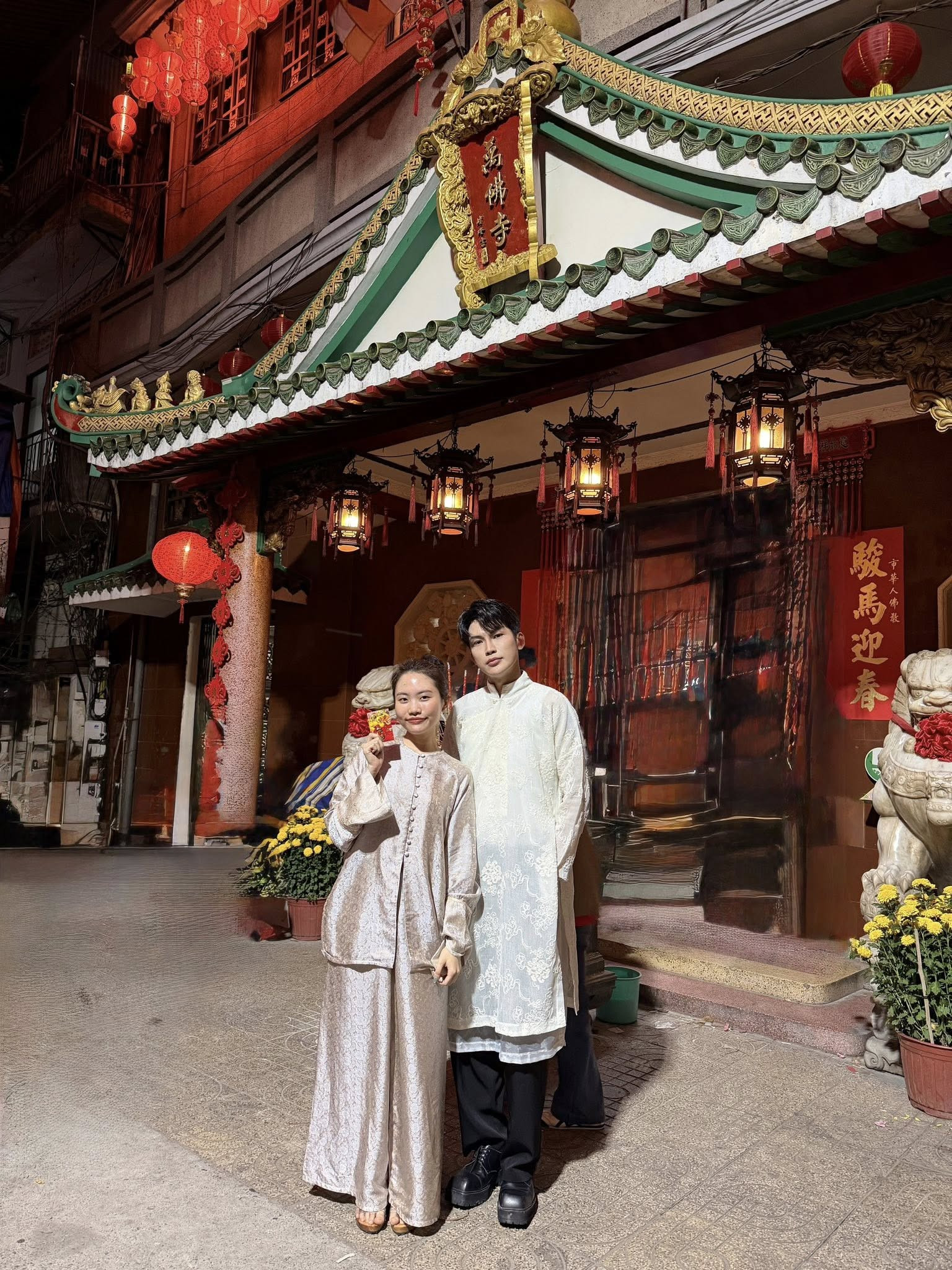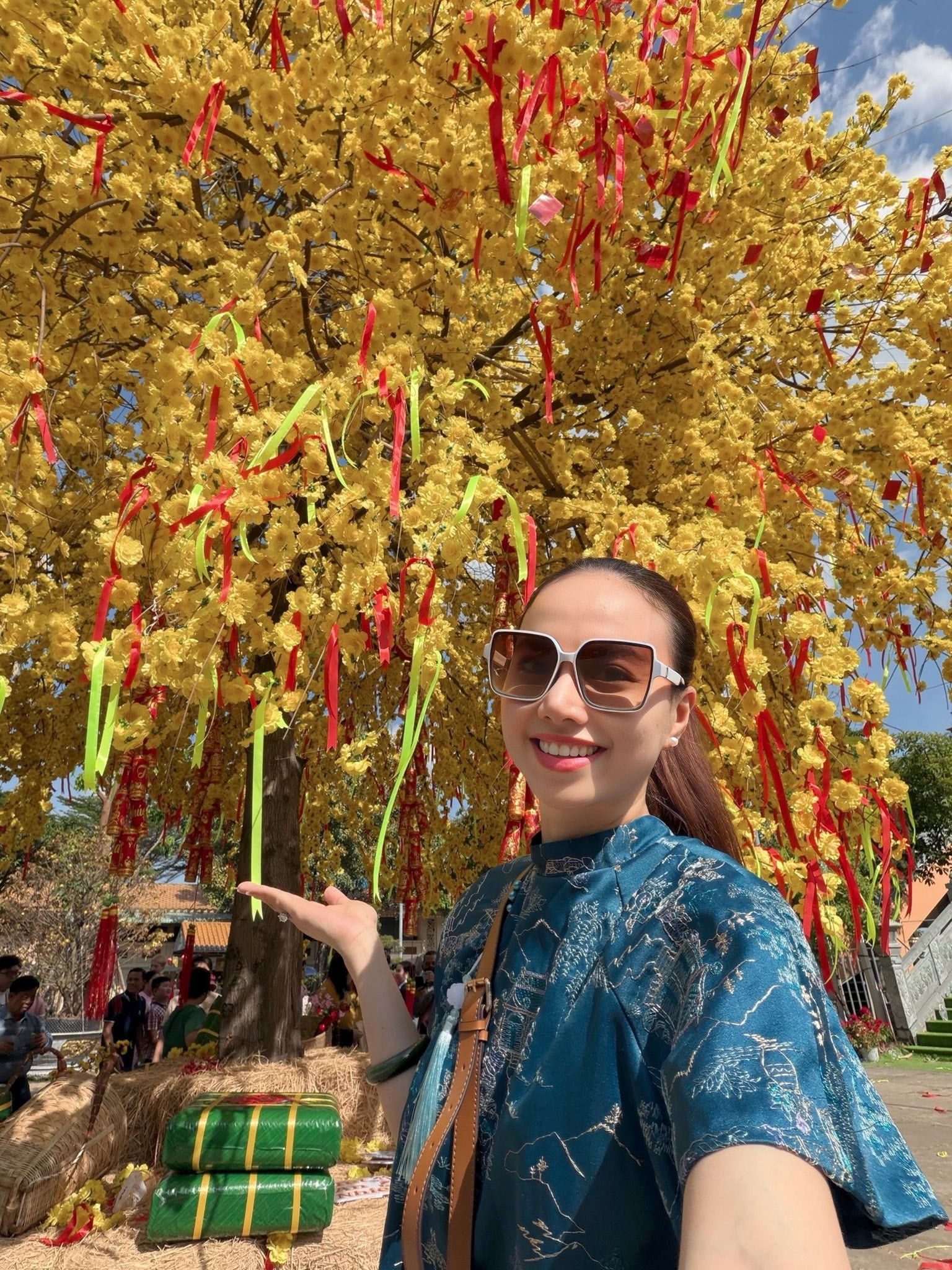 Mỗi dịp đầu năm mới, bên cạnh những bộ áo dài rực rỡ sắc xuân, nhiều nghệ sĩ Việt còn chọn diện pháp phục hoặc áo bà ba cách điệu khi đi chùa, du xuân và gặp gỡ bạn bè. Pháp phục, áo bà ba là trang phục thường được Phật tử mặc khi tham gia các nghi lễ ở chùa, có thiết kế rộng rãi, kín đáo với những gam màu quen thuộc như lam, nâu hoặc xám. Kiểu dáng giản dị nhưng lại mang đến cảm giác thanh lịch, nhẹ nhàng – rất phù hợp không khí đầu năm.