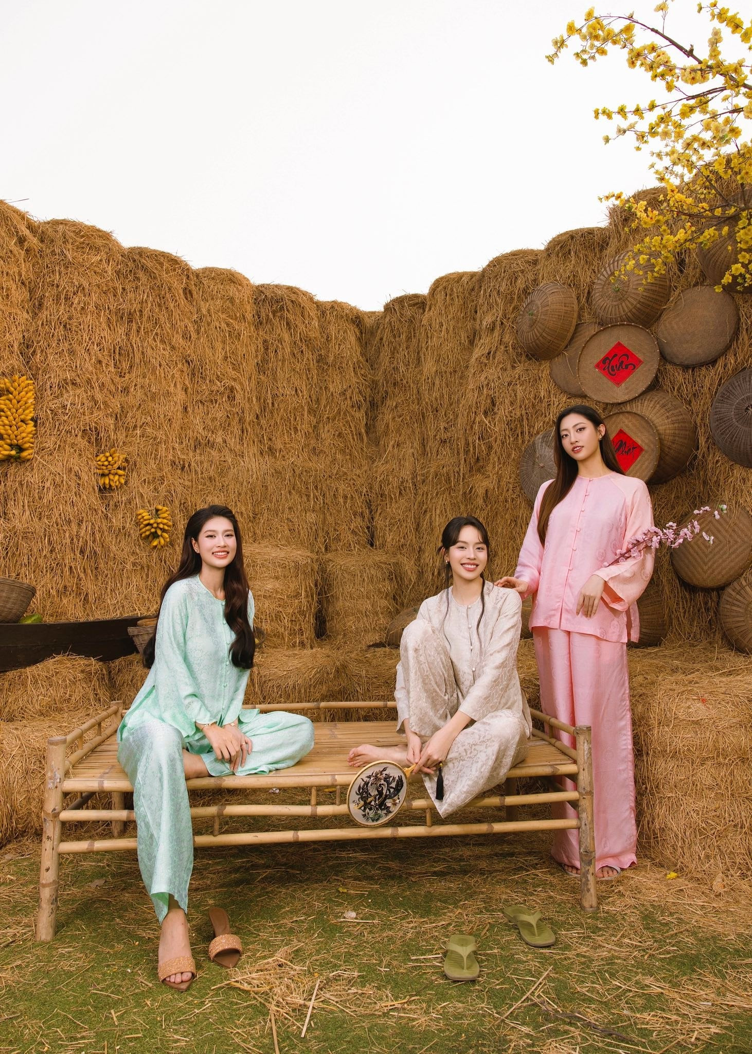 Hoa hậu Việt Nam 2022 - Miss International 2024 Huỳnh Thị Thanh Thủy, Miss World Vietnam 2019 Lương Thùy Linh và Miss Grand Vietnam 2022 Đoàn Thiên Ân diện pháp phục ngày đầu năm.Thanh Thủy, Lương Thùy Linh và Thiên Ân không mặc áo dài, mà chọn ba bộ đồ bà ba với chất liệu lụa tơ tằm mềm mại, màu sắc tươi sáng. Đây cũng là một trong những trang phục rất được lòng các bạn trẻ trong dịp Tết nhờ sự thoải mái và dễ chịu khi mặc.Cũng trong những ngày đầu Xuân mới, Midu diện sẻ đồ bà ba cách điệu khoe không gian nhà mới khang trang, ấm cúng. Thiết kế mang gam màu nhã nhặn, phom dáng mềm mại giúp tôn lên vẻ dịu dàng, nữ tính vốn có của cô. Phần tay và cổ áo được cách điệu tinh tế, tạo điểm nhấn hiện đại nhưng vẫn giữ được tinh thần truyền thống của trang phục miền Tây.Cô cũng diện trang phục này khi về quê chồng lễ Tết. Giữa khung cảnh làng quê yên bình, vẻ đẹp nhẹ nhàng của Midu càng thêm nổi bật, toát lên nét truyền thống pha lẫn hiện đại, ghi điểm bởi sự khéo léo trong cách chọn trang phục cho những dịp quan trọng đầu năm.Còn Phương Mỹ Chi diện pháp phục đi lễ chùa đầu năm.Phương Mỹ Chi luôn nhận được nhiều lời khen ngợi về cả ngoại hình lẫn tài năng. Dù hình ảnh của nữ ca sĩ hay gắn liền với trang phục truyền thống nhưng không bị đứng tuổi, ngược lại còn giúp giọng ca “Quê em mùa nước lũ” khoe được vẻ nữ tính, nền nã, chuẩn con gái Việt.Cũng trong những ngày đầu năm mới, Hoa hậu Đặng Thu Thảo mặc áo bà ba cách tân khi học gói bánh chưng tại biệt thự của đàn chị Hà Kiều Anh. Cô chọn trang phục truyền thống gam màu pastel, chất liệu lụa tạo nên nét duyên dáng, nữ tính của người con gái Việt.Hoa hậu Hà Trích Linh chọn một gam màu trắng kem nhân ngày đầu năm. Trúc Linh cho biết năm nay cô bận rộn với những hoạt động trên cương vị đương kim Hoa hậu Việt Nam nên về quê trễ. Người đẹp rất yêu thích các hoạt động của Tết truyền thống. Cô nhớ nhất khoảnh khắc cùng mẹ nấu bữa cơm chay ngày tất niên.Đinh Ngọc Diệp nổi tiếng là người đẹp “chăm” diện đồ cách tân, pháp phục nhất showbiz Việt. Đầu năm mới, cô cũng chọn trang phục pháp phục cách tân trẻ trung đi lễ đầu năm. Hình ảnh nữ diễn viên ghi điểm với vẻ thanh lịch, nền nã nhưng vẫn toát lên nét hiện đại, tươi tắn.Còn Minh Tú chọn pháp phục cách tân với gam màu rực rỡ, nổi bật giữa không gian lễ chùa đầu năm. Thiết kế cô diện có sắc màu tươi sáng, điểm xuyết họa tiết thêu tinh tế, vừa giữ được nét trang nghiêm cần có, vừa thể hiện cá tính mạnh mẽ đặc trưng của nữ siêu mẫu.Không đi theo phong cách quá cầu kỳ, Minh Tú tiết chế phụ kiện, chọn lối trang điểm nhẹ nhàng và kiểu tóc gọn gàng để tổng thể hài hòa hơn. Hình ảnh của cô nhận được nhiều lời khen bởi sự kết hợp khéo léo giữa truyền thống và hiện đại, mang đến diện mạo mới mẻ nhưng vẫn phù hợp với không khí đầu xuân.