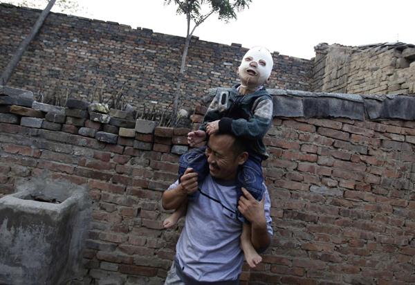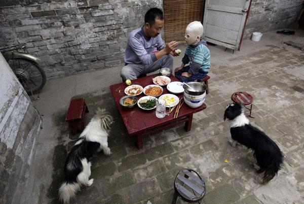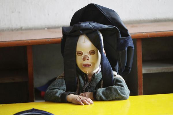 Tuy nhiên, Gengxiang vẫn luôn ao ước được đến lớp học, giao lưu với bạn bè. Chính vì thế, anh Wang Shouwu, bố của cậu bé đã giúp con trai đeo mặt nạ mỗi khi tới lớp. Cách làm này cũng giúp ngăn ngừa vết sẹo trên đầu Gengxiang phát triển và lan rộng.