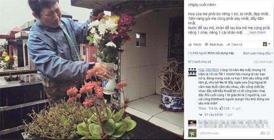 Trong đoạn chia sẻ này cô gái cho biết trong suốt 10 năm mẹ mất tuần nào bố cũng ra mộ thắp hương, cắm hoa, dọn dẹp nghĩa trang. Không biết bao nhiêu nước mắt của người đàn ông từng trải đã rơi vì người vợ quá cố, cũng không có gì có thể làm thay đổi tình yêu như thuở ban đầu bố dành cho mẹ.