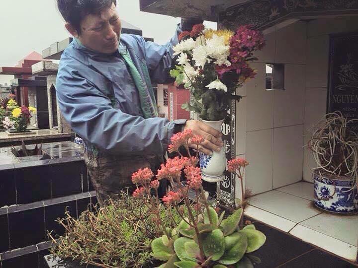 Nước để lau mộ, khăn để lau bia mộ mẹ cũng phải riêng 1 chai, riêng 1 cái khăn mặt...