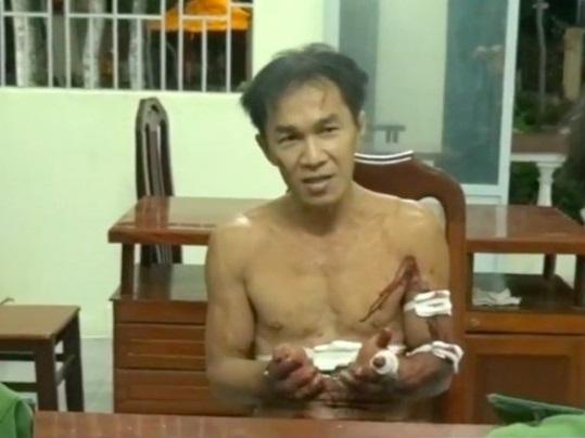 Trung tá Trần Văn Minh, Trưởng Công an phường 3 dùng súng đạn cao su bắn chỉ thiên thì nghi can cầm hai con dao lao tới chém đứt lìa hai ngón tay và vết thương sâu ở bắp tay phải.