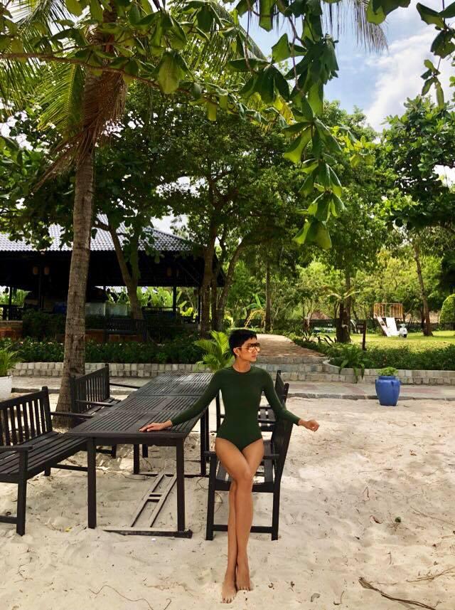 Các cô nàng muốn khoe đường cong mà ngại đen da vì nắng biển thì bộ đồ bơi của hoa hậu H’Hen Niê là một lựa chọn lý tưởng. Toàn bộ phần thân trên của các nàng sẽ được che chắn kĩ lưỡng, chỉ còn lại đôi chân dài bất tận.