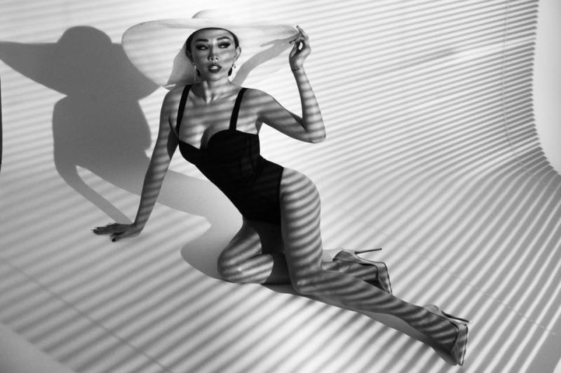 Muốn diện đồ bơi một mảnh mà vẫn sexy thì các cô nàng phải học hỏi thần thái của Tóc Tiên. Kiểu chụp hình này cũng là một bí kíp giúp chân của các nàng dài bất tận.