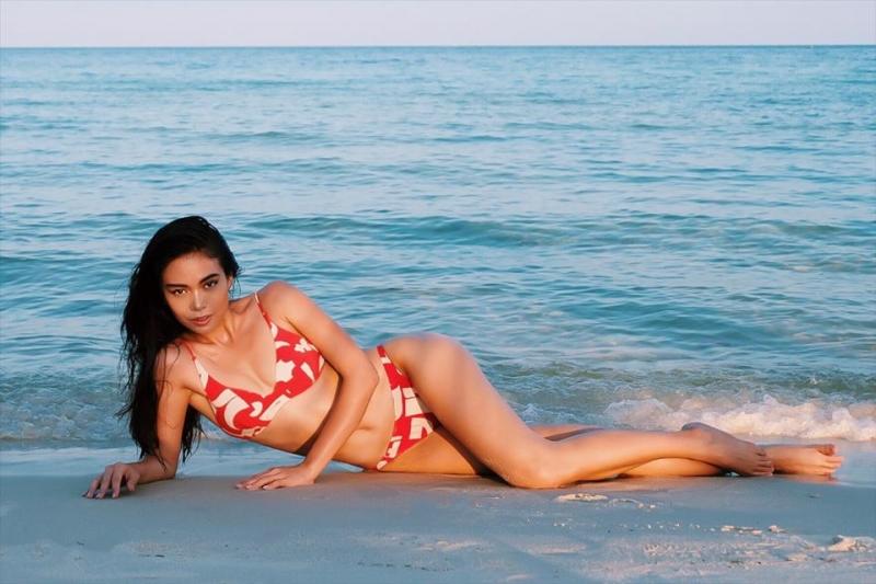 Váy quấn đang là hot trend thì đồ bơi quấn cũng thế. Lan Khuê đã nhanh chóng cập nhật xu hướng này.