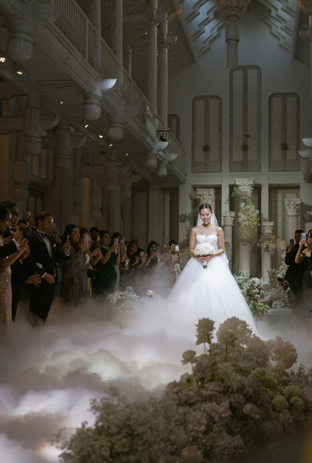 Khác lần đầu tiên ở TP.HCM, đám cưới này có quy mô khách mời nhỏ hơn, ấm cúng hơn, chủ yếu là bạn bè thân thiết của cô dâu và chú rể. Tuy nhiên, ngày vui của cặp đôi vẫn gây trầm trồ không chỉ bởi không gian xa hoa mà còn đến từ những chi tiết rất nhỏ.