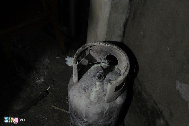 Bình ga bị nghi phạm đốt, phụt lửa dữ dội. Ảnh: Ngọc Tân.