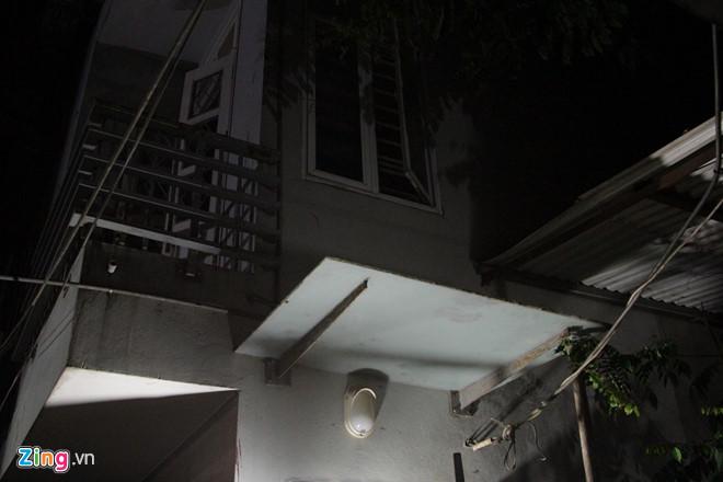 Ban công tầng 2 ngôi nhà, nơi người chủ trèo thoát xuống đất với sự trợ giúp của hàng xóm. Ảnh: Ngọc Tân.