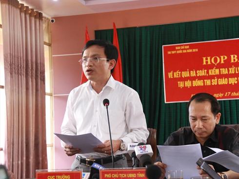 "Về cán bộ vi phạm và trách nhiệm của Giám đốc Sở GD-ĐT Hà Giang, trách nhiệm trước hết thuộc về ban chỉ đạo, thứ hai là hội đồng thi của Hà Giang. Trách nhiệm đến đâu sẽ xử lý đến đó, chúng tôi không thoái thác trách nhiệm. Về nghi vấn bố mẹ mua điểm cho con, thì chúng ta phải chờ thời gian để cơ quan pháp luật vào cuộc. Nếu đúng như vậy thì sẽ theo quy định của pháp luật để xử lý”.