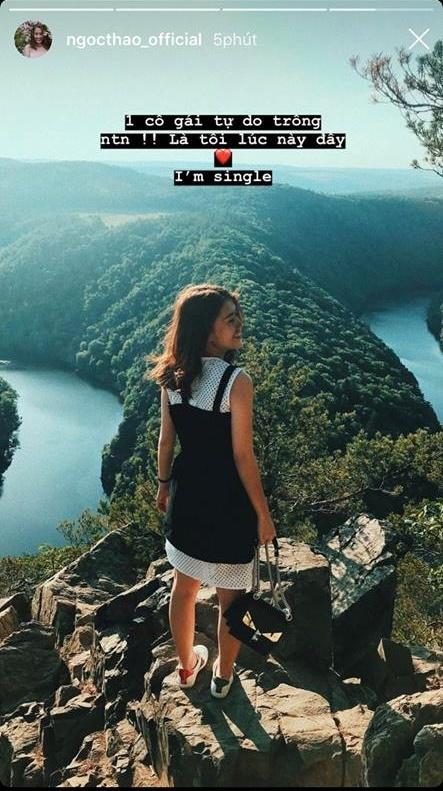 Mới đây, dân mạng xôn xao vì tin đồn hot girl Ngọc Thảo đã chia tay bạn trai sau 3 tháng hẹn hò. Lý do của những nghi ngờ này xuất phát từ việc trên story của Instagram cá nhân Ngọc Thảo có đăng bức ảnh đứng một mình với dòng caption: “1 cô gái tự do trông như thế này! Là tôi lúc này đây. I'm single (tôi độc thân)".