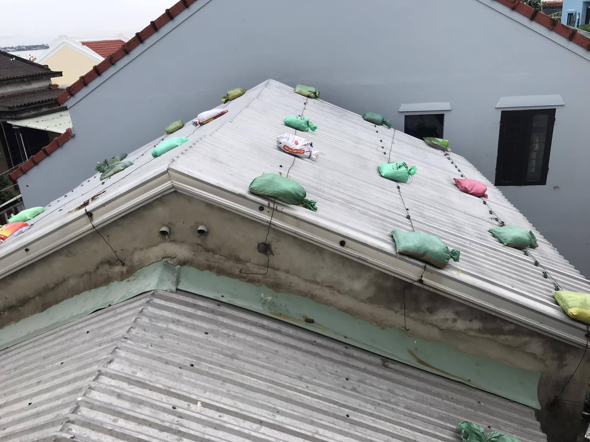 Một cách an toàn nhất, đó là tháo mái tôn xuống cất đi, khi nào bão tan thì lắp lại.