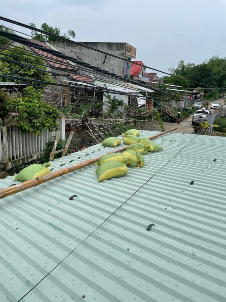 Hầu hết các gia đình đều chuẩn bị những bao cát nặng đặt lên mái nhà để tránh gió thổi bay mất.