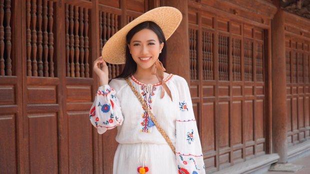 Xinh xắn, đáng yêu khi đi du lịch cùng bạn bè với phong cách vintage và mũ cói trendy.