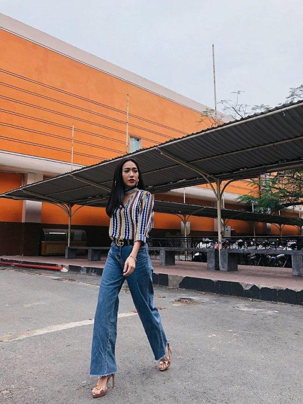 Bộ đồ demin khỏe khoắn, trẻ trung mang lại vẻ năng động sành điệu cho nữ diễn viên. Đến cả cách tạo dáng cũng phải lầy lội như thế này.
