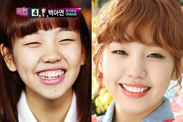 Dù nụ cười tươi tắn luôn xuất hiện trên môi Baek Ah Yeon khi đi thi Kpop Star, nhưng khi nổi tiếng, cô nàng đã ngay lập tức đến gặp nha sĩ để xử lý hàm răng không đều.