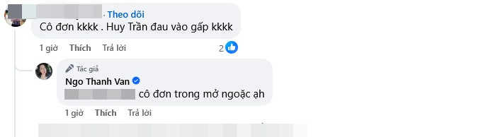 Không để cư dân mạng phải bàn tán xôn xao, phía dưới bài đăng, nữ diễn viên lập tức đáp trả một bình luận khi được hỏi "Huy Trần đâu". Cô cho biết "cô đơn" ở đây được đặt trong dấu ngoặc hàm ý muốn nhấn mạnh việc cho con bú vốn là thiên chức của người mẹ và không ai có thể thay thế được. Dù ông xã vẫn luôn bên cạnh nhưng hành trình nuôi con vẫn chưa bao giờ là dễ dàng đối với những mẹ bỉm lần đầu lên chức.