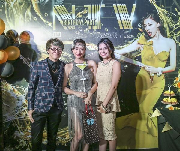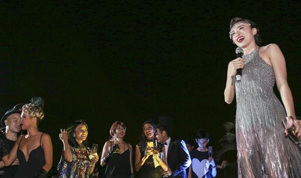 Tiệc sinh nhật được thiết kế theo phong cách Gastby với trang phục và trang điểm cổ điển đặc trưng của Mỹ vào những năm 20 thế kỷ trước.Đây là phong cách Ngô Thanh Vân rất yêu thích và mong muốn được thực hiện trong ngày vui của mình cùng bạn bè. Khách mời dự tiệc thích thú khi diện trang phục theo phong cách vô cùng tự do, phóng khoáng với các thiết kế đính đá, ngọc trai vô cùng ấn tượng này.