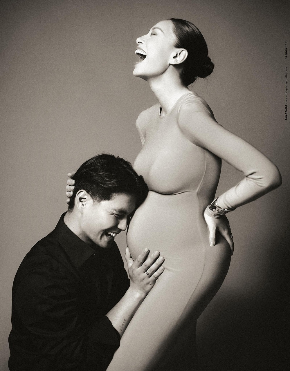Hiện tại, người đẹp đang bước vào chặng cuối thai kì. Nhiều người dành lời chúc mừng "mẹ tròn con vuông" đến bà xã Huy Trần.