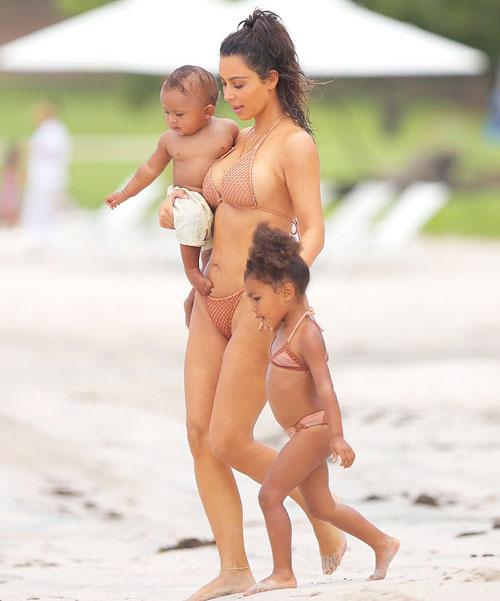 Giữa tuần này, Kim trông mảnh mai bất ngờ khi đưa hai con đi nghỉ mát ở Mexico.