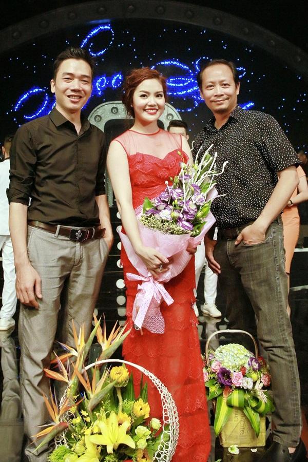 Thành Lê và Hà Hoài Thu vào trong hậu trường để cổ vũ, khích lệ Ngọc Anh tinh thần thoải mái trước đêm diễn.
