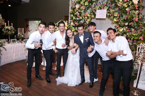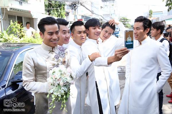 Dàn bưng quả bên nhà trai hùng hậu với Kiều Minh Tuấn, Quốc Trường, Hà Trí Quang, Hoàng Anh, Hồ Giang Bảo Sơn và Trương Nam Thành.