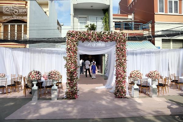 Sau khi làm lễ tại nhà, cô dâu và chú rể di chuyển tới địa điểm tổ chức tiệc chiêu đãi bạn bè
