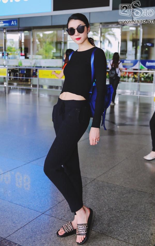 Ngọc Quyên trẻ trung xinh đẹp trở về từ Mỹ, dù bay chuyến bay dài nhưng cô không hề thấy mệt. Dù đã là "mẹ một con" nhưng vóc dáng của cô vẫn rất thon gọn