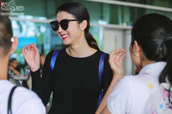 Xuất hiện tại sân bay vào trưa nay, Ngọc Quyên vấn rất tươi trẻ sau một chuyến bay dài, cô về cùng với chồng, thời gian dự kiến đến sân bay là 11h45 nhưng do máy bay đến sớm, thời tiết khá nóng bức nên chồng của Ngọc Quyên đã vào xe ngồi trước để lại cô nàng thoải mái chụp ảnh, gặp gỡ fan của mình.