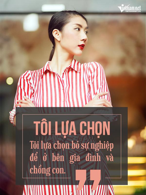 Để cân bằng rất khó, ai cũng phải bỏ một cái gì đó xuống thì mới có thể cân bằng hai bên. Và tôi lựa chọn bỏ sự nghiệp để được ở bên chồng con. Bây giờ tôi coi gia đình chính là công việc và không hối tiếc về điều đó.