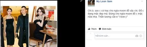 Ngay sau đó, nhiều cư dân mạng tỏ ra không hài lòng khi chiếc váy của Ngọc Trinh được người đẹp khác mặc, nhất là mặc trong một dịp quan trọng là đi gặp người tình tỷ phú tại Thượng Hải, Trung Quốc. Facebooker My Loan Sam nhắn nhủ thần tượng: 'Chị à! Sao chị cứ hay cho người ta mượn đồ vậy chị. Đồ chị mặc đang đẹp mà. Đừng cho người ta mượn đồ chị mặc nữa nha. Thần tượng của em...'.