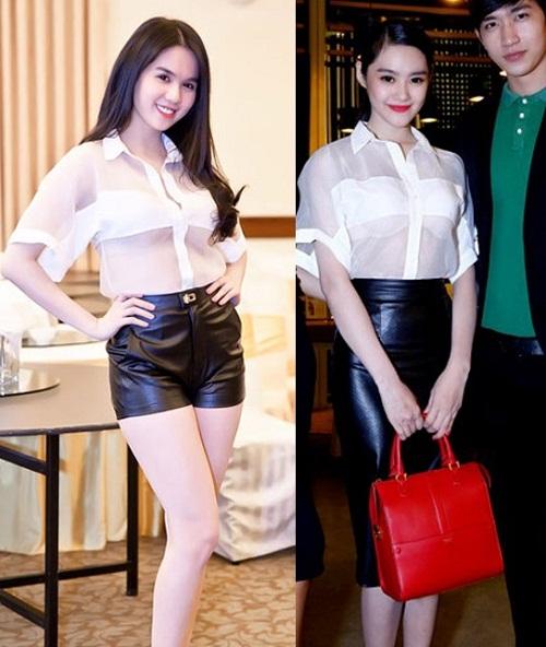 Không ít lần những bộ đồ của Ngọc Trinh được đàn em thân thiết Linh Chi và các người đẹp khác
