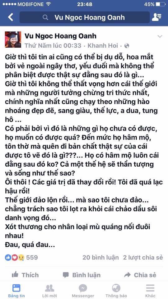 Giữa lúc dư luận đang nhiễu loạn về nội dung phim và cuộc sống đời thực của Ngọc Trinh, mới đây chân dài lại khiến showbiz dậy sóng khi công khai chia sẻ nỗi ấm ức của mình khi bị người khác công kích mạt sát. Điều đặc biệt, dù không chính thức lên tiếng nhưng hành động like những status mạt sát Ngọc Trinh của một số mỹ nhân Việt được nữ hoàng nội y công khai trong lúc bức xúc đang khiến dư luận xôn xao.
