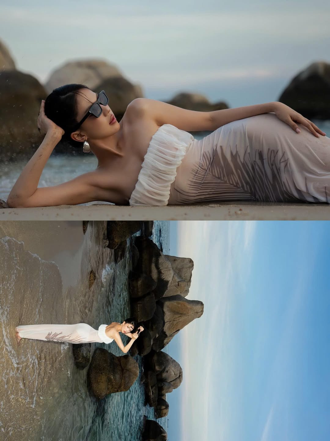Mới đây, Ngọc Trinh gây chú ý khi xả bộ hình mới tận hưởng "vitamin sea". Thả dáng dưới biển, cô diện đầm xuyên thấu khoe trọn vóc dáng đẹp như tạc.