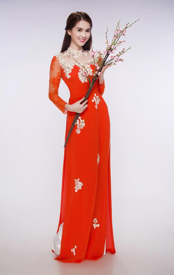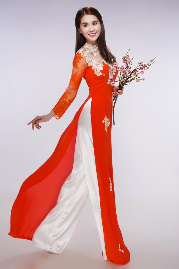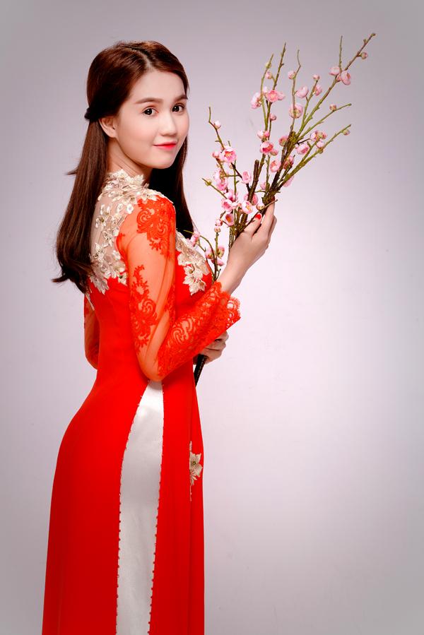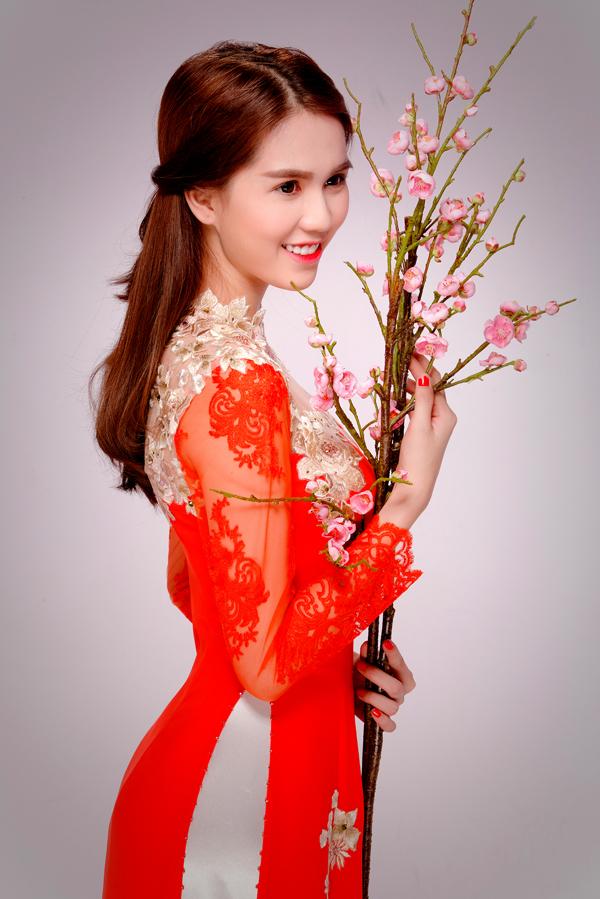 Trong bộ ảnh mới chụp nhân dịp xuân chào xuân, ''nữ hoàng nội y'' Ngọc Trinh bỗng trở nên duyên dáng và dịu dàng khi khoác lên mình chiếc áo dài cách điệu. Tông màu đỏ trẻ trung, rực rỡ phù hợp với hình ảnh tươi tắn, cuốn hút của người mặc. Ngọc Trinh tạo dáng nhẹ nhàng, thướt tha bên cành hoa đào đỏ thắm đang đua sắc dịp xuân về.
