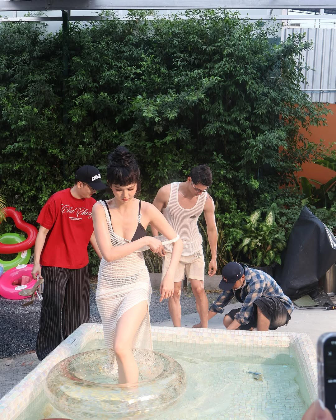 Mới đây, Ngọc Trinh xả bộ ảnh gây sốt. Trên trang cá nhân, người đẹp khoe hình ảnh lẫn hậu trường buổi chụp hình cùng bạn diễn nam.