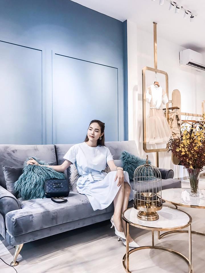 Minh Hằng hóa tiểu thư nhẹ nhàng trong mẫu đầm xanh pastel mát mắt kết hợp túi hộp Chanel ton-sur-ton.