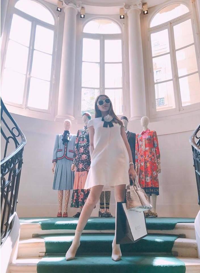 Chân dài diện set đồ trắng sang chảnh cùng túi Birkin bạch tạng gây bão một thời.