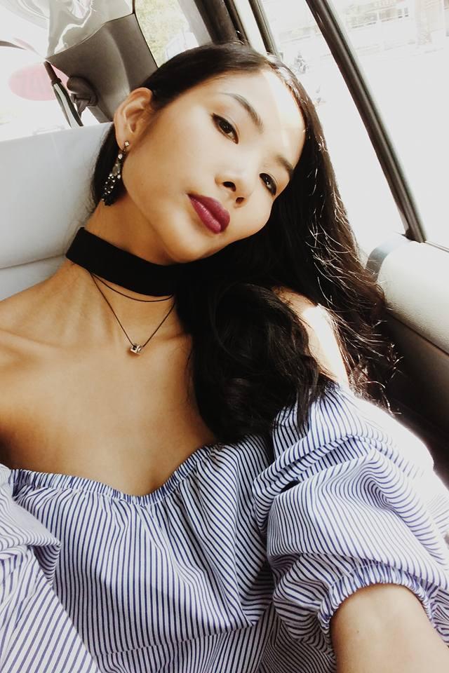Hoàng Thùy xinh đẹp và thời thượng với vòng choker bản to màu đen.