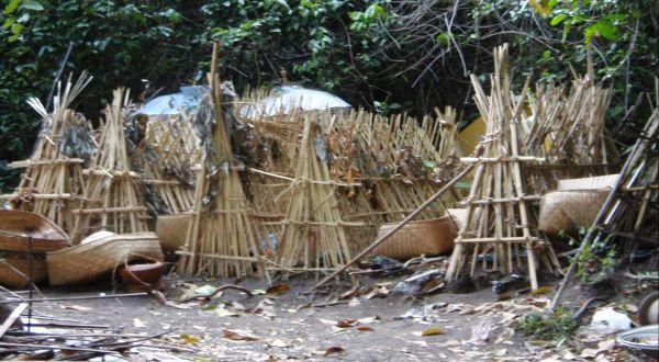 Tương ứng 11 chùa là 11 khu chôn người chết lợp bằng tre và cọ. Người chết