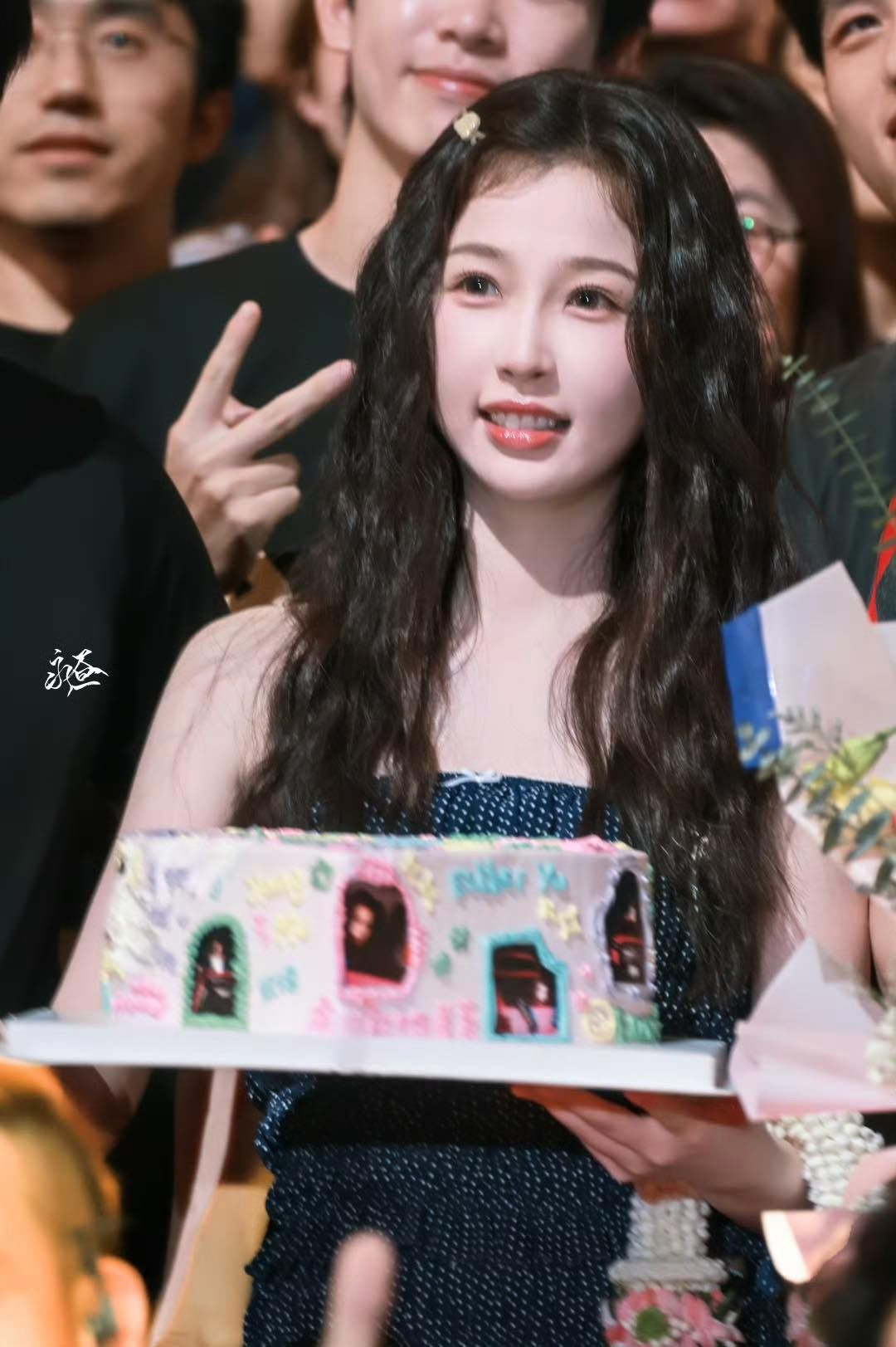 Không chỉ đổ nước lên đầu đạo diễn Vu Trung Trung, Ngu Thư Hân còn gây tranh cãi khi bất ngờ trét bánh kem lên mặt bạn diễn Hà Dữ, khiến anh giật mình.