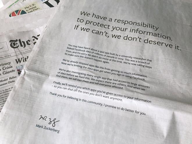 "Chúng tôi có trách nhiệm bảo vệ thông tin của bạn. Nếu không thể, chúng tôi không xứng đáng phục vụ", CEO Mark Zuckerberg nói. Ảnh: AP.