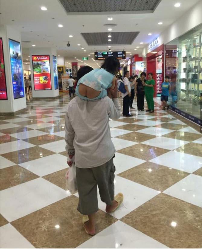 Vào dịp trung thu vừa qua, hình ảnh người cha nghèo cõng con trên vai trong trung tâm thương mại khiến dân mạng không khỏi nghẹn lòng. Theo người chia sẻ bức ảnh, khuôn mặt của người bố ngây dại khiến mọi người càng thêm thương cảm. "Tự dưng thấy thương thật sự. Quần áo thì thất thểu chân tay lấm lem. Nhìn 2 đôi mắt như ngơ ngác không biết gì xung quanh lại càng thương. Chắc cho con đi chơi trung thu. Tay vẫn xách túi nilon bên trong có mấy hộp sữa."